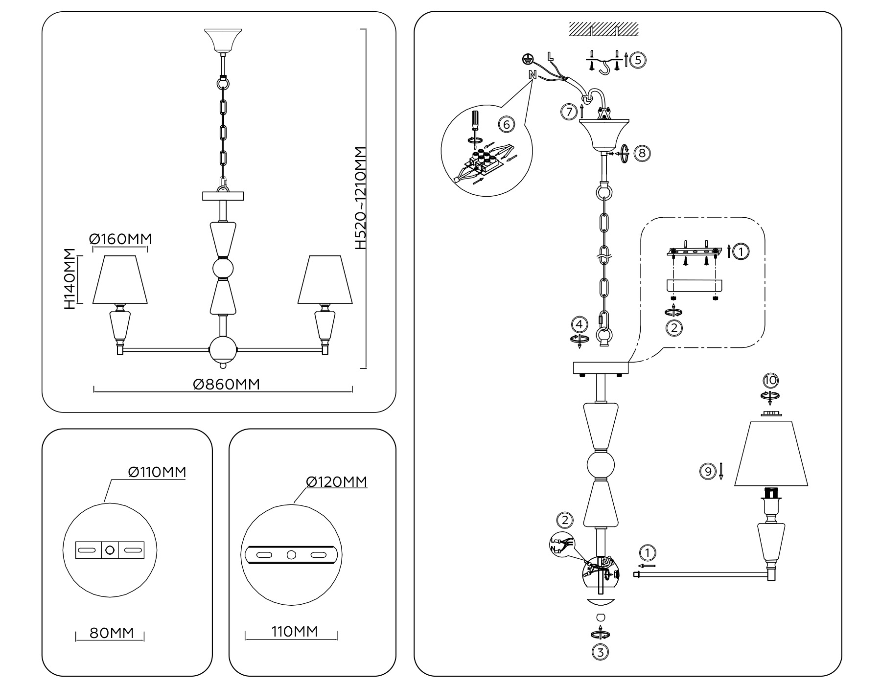| Высота люстры с троссом, мм |
