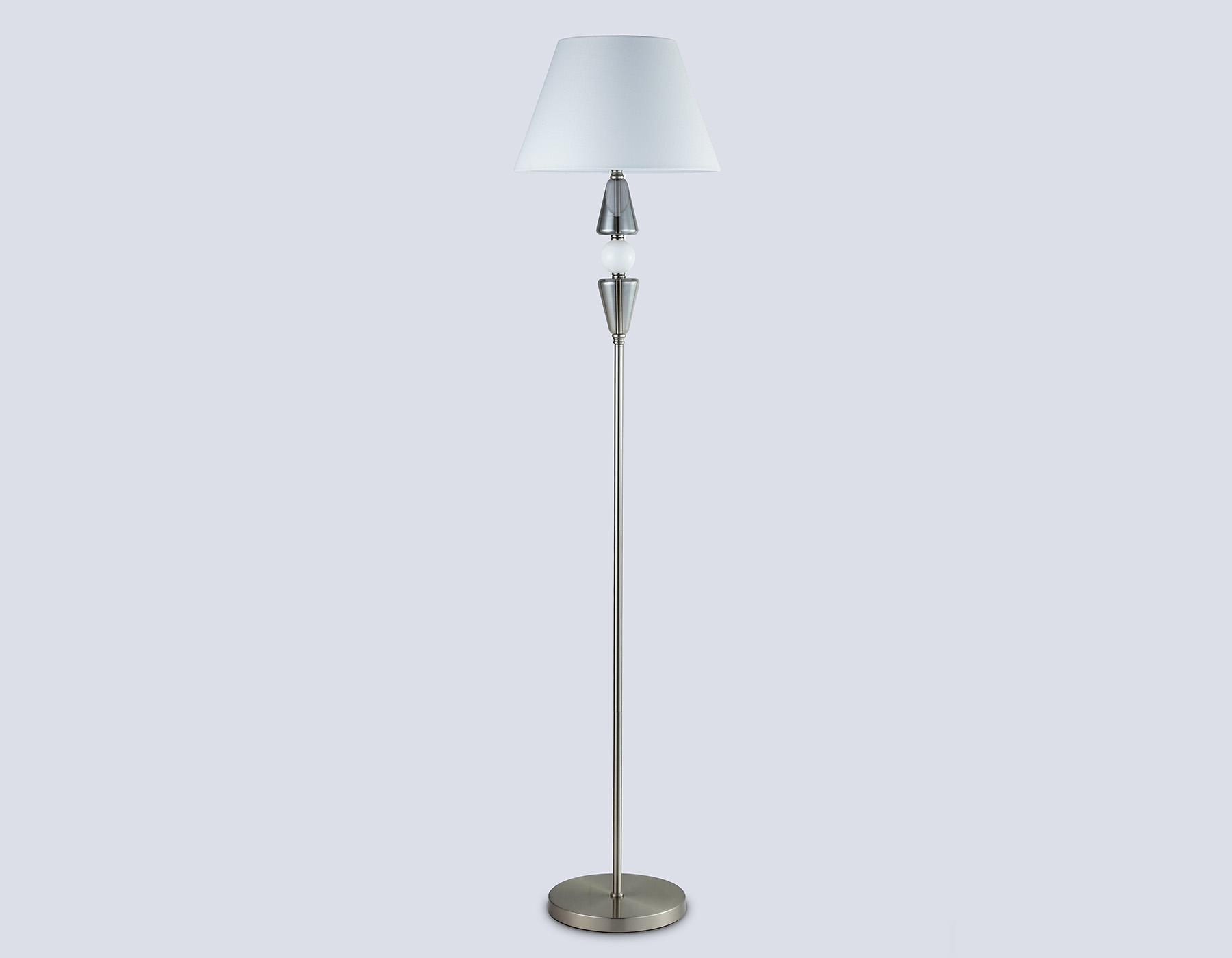 Напольный светильник из коллекции HIGH LIGHT. Модель LH75265 представлена в стиле неоклассика. Светильник выполнен из металлического каркаса цвета сатин никель, белого тканевого плафона, а также декорирован стеклянными элементами. Для данной модели подойдет сменная лампа с цоколем Е27. Светильник будет прекрасным дополнением в любом помещении.
