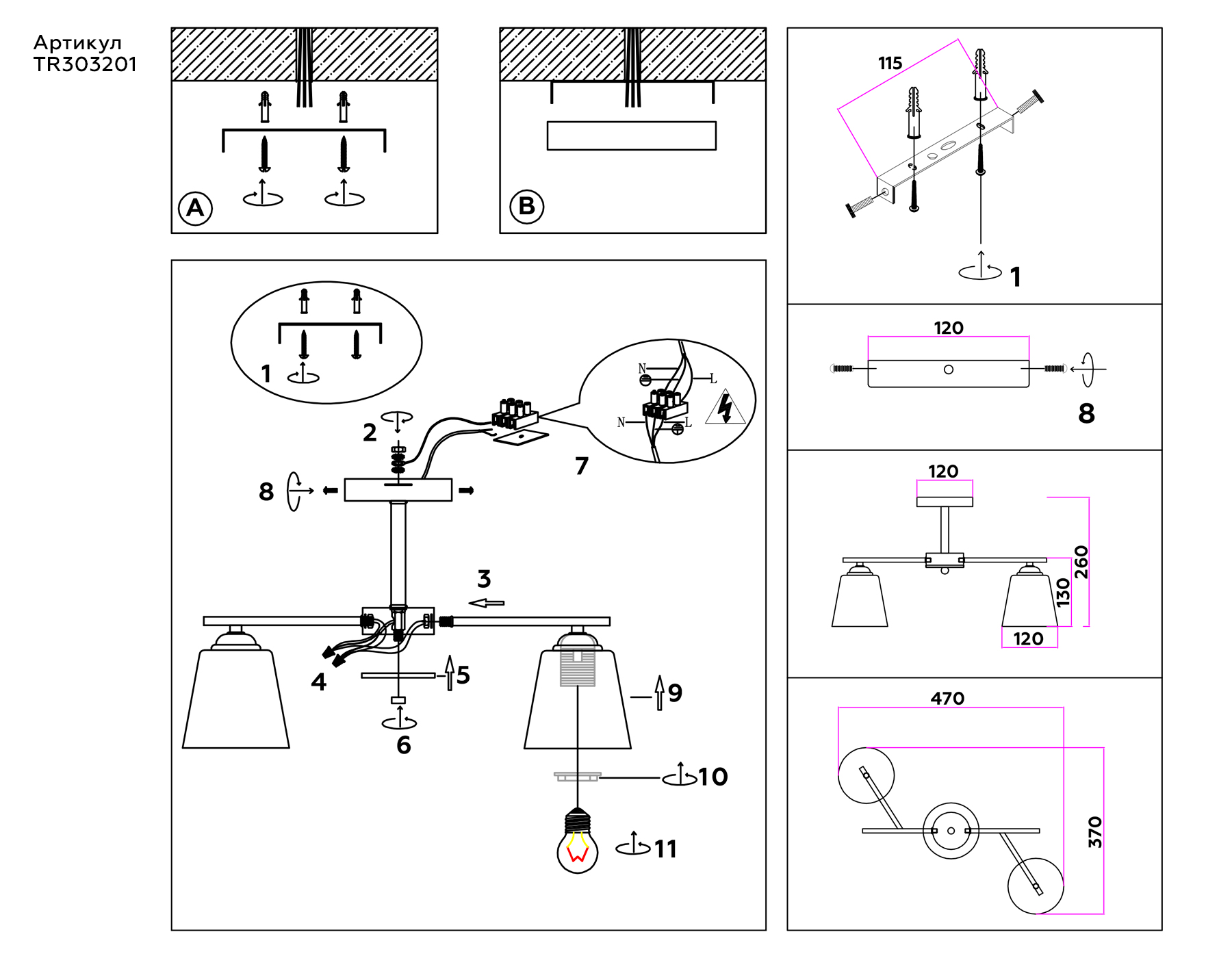 TR303201/2 WH/CH/FR белый/хром/белый матовый E27*2 max 60W 470*370*260