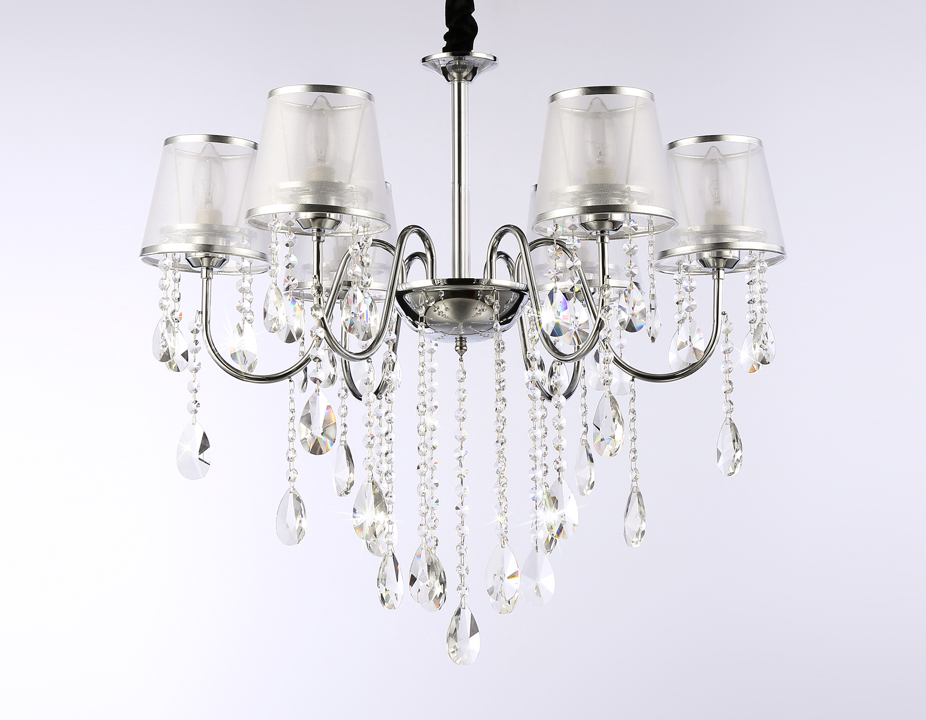 Подвесная люстра с абажурами из коллекции TRADITIONAL. Модель TR4588 представлена в классическом стиле. Люстра выполнена из тканевых плафонов серебряного цвета и декорирована превосходным прозрачным хрусталем, каркас изготовлен из металла цвета хром. Для данной модели подойдут лампы с цоколем Е14. Люстра будет прекрасным дополнением в любом помещении.
